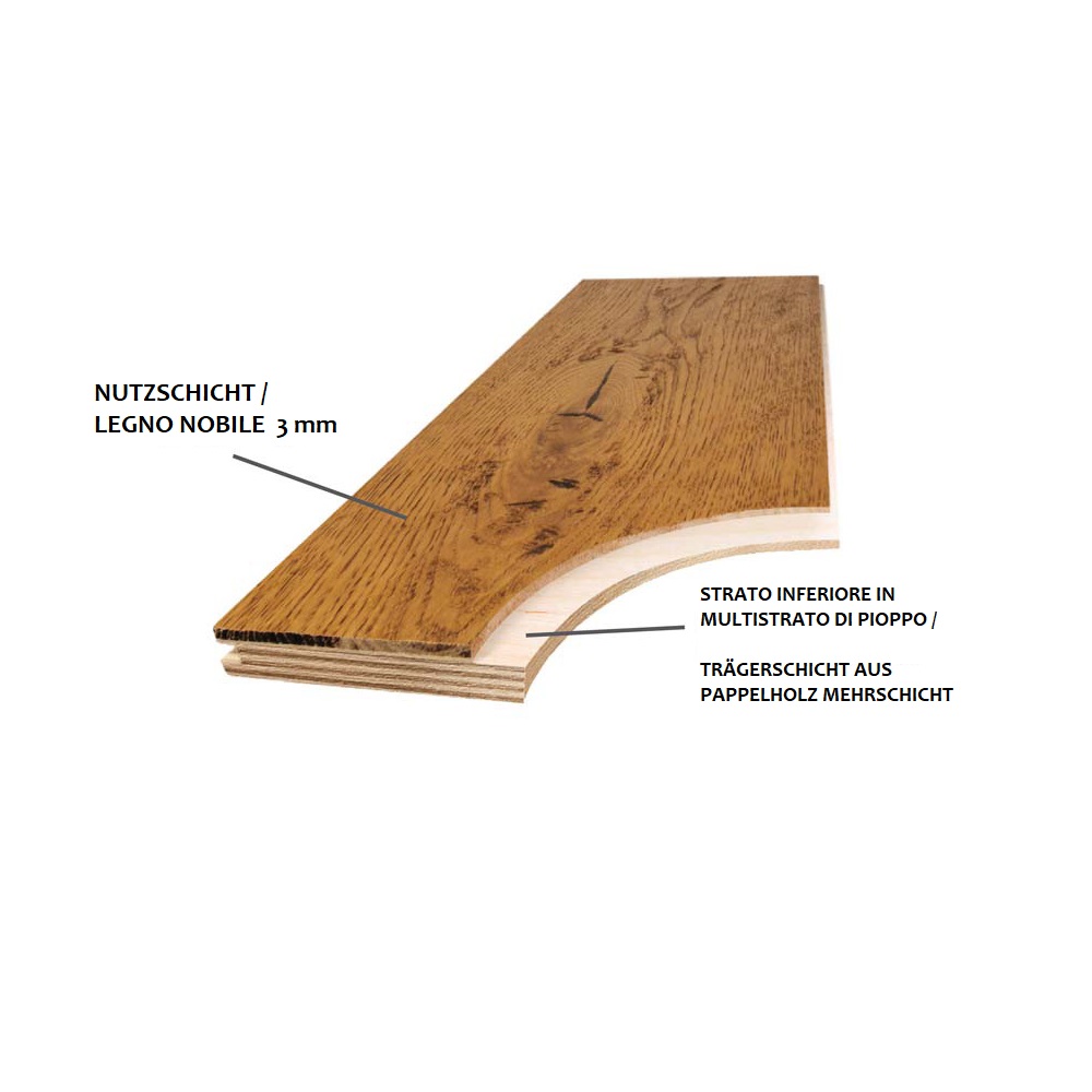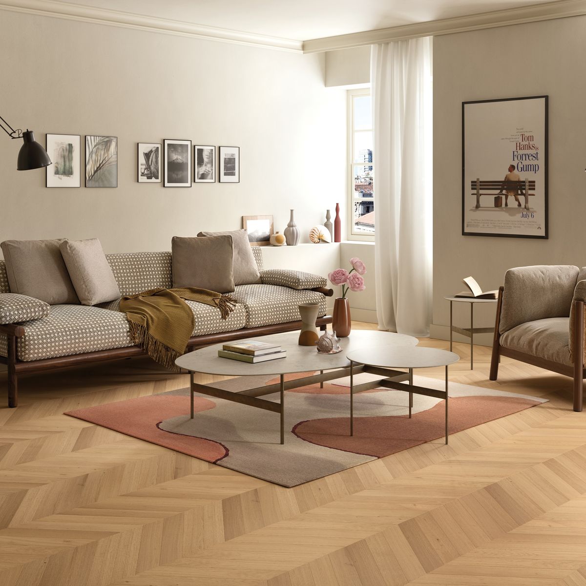 Woodco Ground Star Rovere Cream spazzolato verniciato opaco, Parquet a spina francese a due strati 510x90x10mm